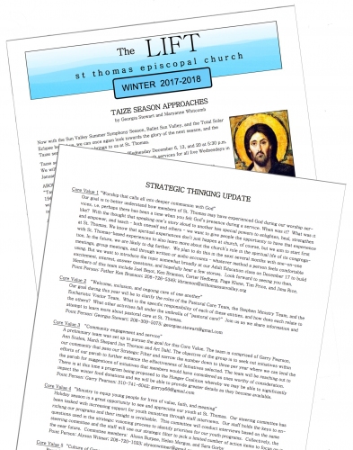 Ken sees these implementation teams as a significant way to build in accountability so that St. Thomas’s strategic visioning doesn’t end up on the shelf. His group is working with Core Value 1—Worship that calls all into deeper communion with God. The annual goal approved by the vestry in June of 2017 was to “seek out and gather stories of ways that members have experienced God in worship,” work that began with a parish-wide forum in December 2017, where individuals talked about how they’ve encountered God at St. Thomas.